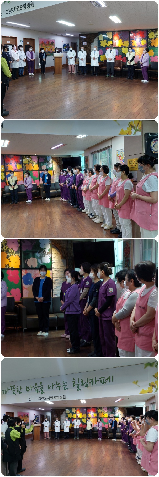 3월 월례회 가져. 페이지 정보 작성자 최고관리자 작성일26-03-04 16:40 조회541회 댓글0건 이전글 다음글 목록 본문 그랜드자연요양병원은 3월 4일 1층 로비에서 전 직원들이 참석한 가운데 그랜드자연 월례회를 가졌다. 신입 직원들의 인사가 이어졌고 봄의 설레임으로 시작되는 3월을 준비하는 마음으로 "그랜드 그랜드 힘!"의 구호와 함께 3월 월례회를 마쳤다. 댓글목록 등록된 댓글이 없습니다. 이전글 다음글 목록